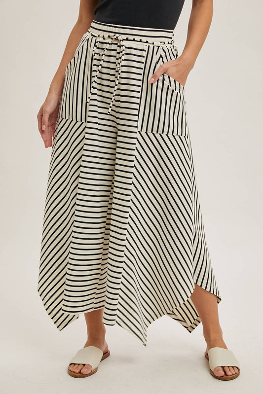 DRAWSTRING STRIPED WIDE LEG PALAZZO PANTS